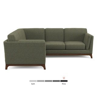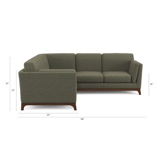 The Ceni sectional fuses the classic with the modern featuring its plush seating, sleek track arms and clean design lines. Its beautifully crafted wooden base with slanted legs enhances its strong and sturdy construction, while its plush seat cushions, backrests and armrests allow you to snuggle up comfortably.