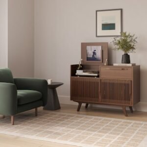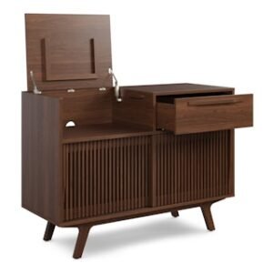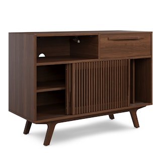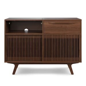 Tell me your favorite film is “High Fidelity” without telling me your favorite film is “High Fidelity.” Alright, enough with the jokes. Our new version of the popular Jokuna Media Unit includes a flip-top lid designed to accommodate a turntable, with a record sleeve holder to display your chosen LP — we know what matters. With its slatted sliding doors for record storage on one side and space for speakers, an amp, or a gaming console on the other, our Jokuna Vinyl Media Unit is the answer to your overflowing record collection.