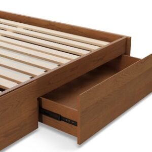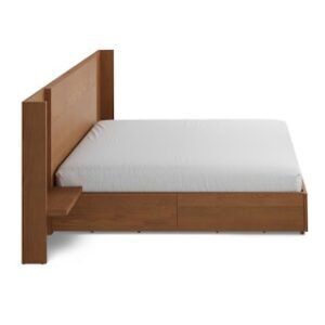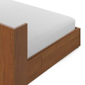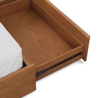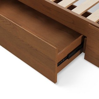 The strong, silent type. The Leif storage bed embodies the classic tropes we associate with Scandinavian good looks: tall, blond, sturdy, impeccable posture. But it’s not all good looks and clean lines; it’s also soft-spoken and sensitive to your (storage) needs. Featuring four soft-close drawers — two on either side, the Leif boasts some serious storage capacity. Now available with our Leif extensions included, they add a bedside table to either side while maintaining access to its ample storage. The extensions create a pleasing l-shaped wall for a cozy, cocooning effect — the perfect way to keep an open, airy vibe without sacrificing storage space.