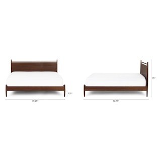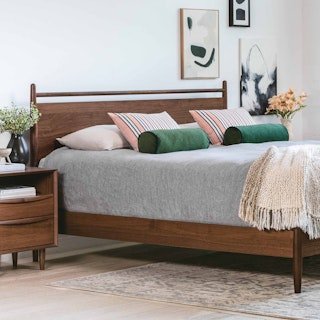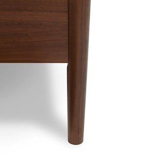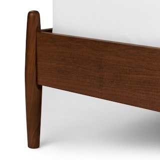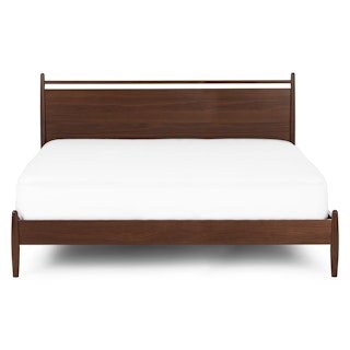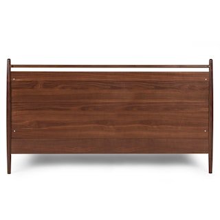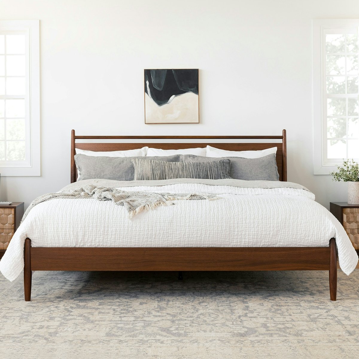 Simple pleasures. The Lenia bed takes notes from the Shaker school of design: tapered legs, solid beech and veneered walnut, panel headboard, concealed joinery, and an unadorned silhouette. The Lenia’s quiet beauty will take center stage in your bedroom. Sweet dreams.