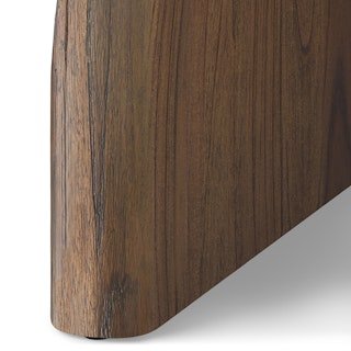 Welcome, Lloyd, the gentle giant. With a solid wood construction throughout, Lloyd’s rustic charm comes from its wire-brushed finish, accentuating the natural wood grain and giving the piece a highly texturized look and feel. Its sizeable top rests boldly atop two arched plinth legs, offering a striking contrast against its soft, rounded edges. Lloyd is visually bold but soft at heart.
