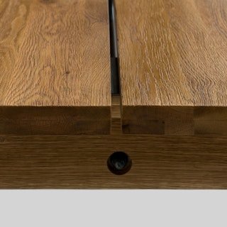 - Split-slab design made to acommodate the natural behaviour of solid wood furniture