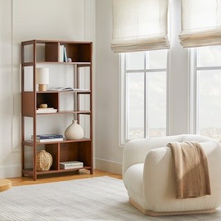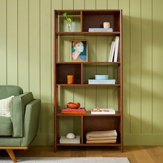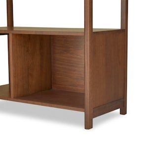 Panelled beauty. The elegance of the Mysen bookcase grows upwards, in the form of a Bookcase. With its simple, open aesthetic still front and center, and signature reversed back panel design, the Mysen Bookcase provides a show-worthy foundation for any object to take center stage.