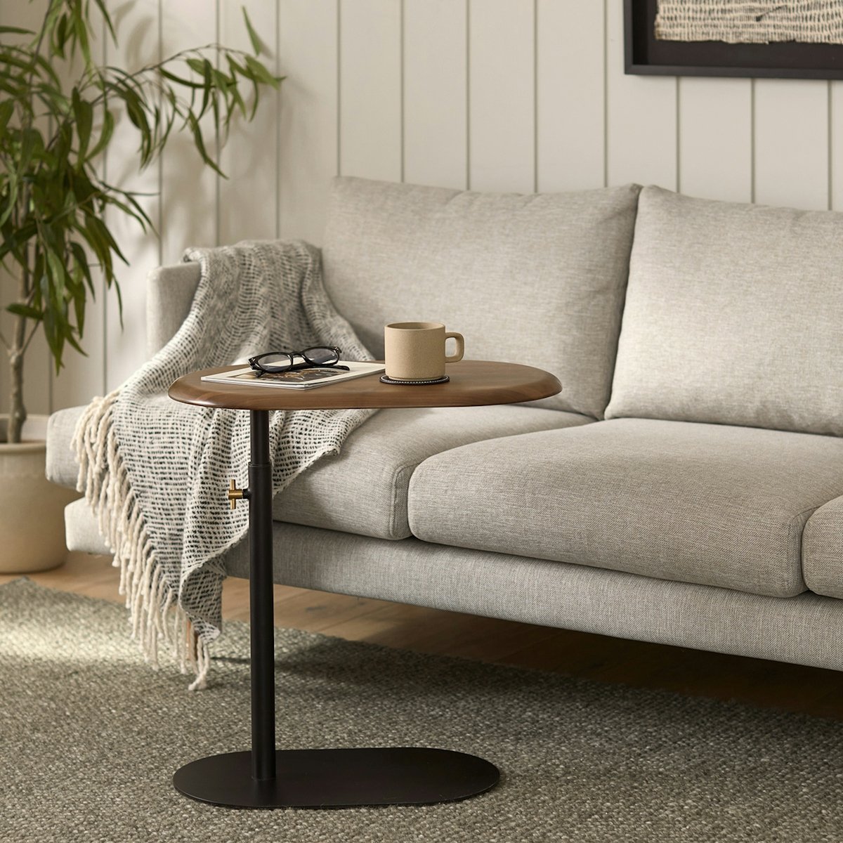 With its adjustable height, the Portima Side Table is always exactly where you need it. Crafted with a solid wood top big enough to hold a standard laptop, the Portima is also perfect for keeping your after-work refreshment of choice at arm’s length. Plus, the slim yet sturdy powder-coated steel base slides conveniently under your sofa or chair so you can bring everything a little bit closer if needed.